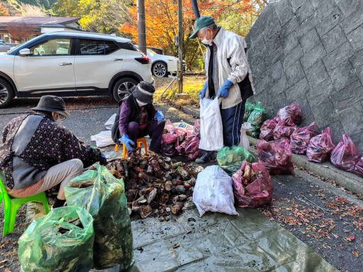 回収作業終了後、袋詰めしたゴミを別所駐車場まで担ぎ降ろします。